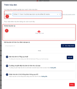 - Chọn Doanh nghiệp (1) cần thêm hóa đơn.