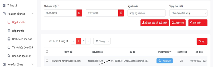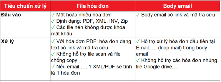 Với tiêu chuẩn xử lý hóa đơn đầu vào trong nội dung thư