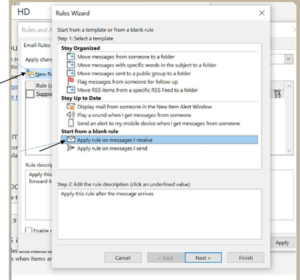 Bước 4.4: Chọn New Rules >> Apply rule on messages I receive >> Next