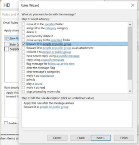 Ở dưới Step 2, click chọn People or public group -> điền email UBot tại mục To –> OK –> Next –> Next –> Finish –> OK