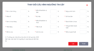 Tại đây, bạn có thể thiết lập ngưỡng tin cậy chấp nhận cho từng thông tin hóa đơn mà UBot đọc ra từ file hóa đơn OCR