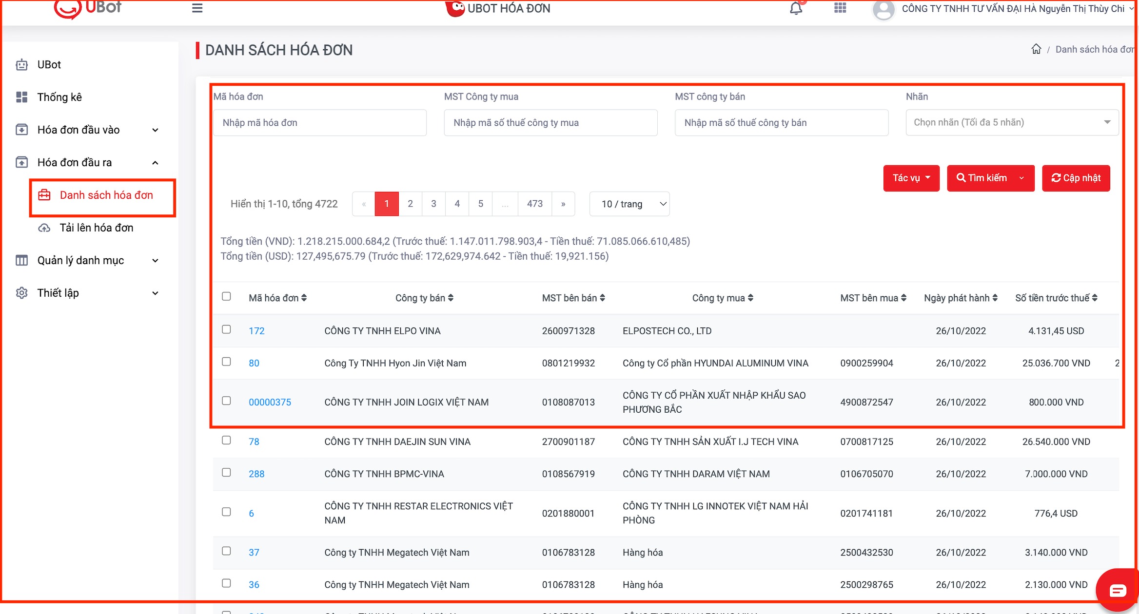 Chi tiết hoá đơn đầu ra đổ vào Danh sách hoá đơn >>> https://portal.ubot.vn/invoice/my-ubot/output/list-invoice.