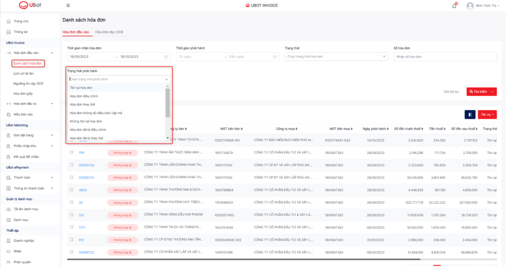 Tham khảo: Trạng thái phát hành của hóa đơn trên Tổng cục thuế, các trạng thái bao gồm