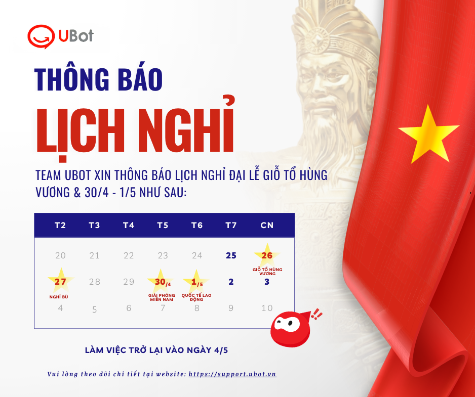 UBot xin trân trọng thông báo lịch nghỉ như sau: